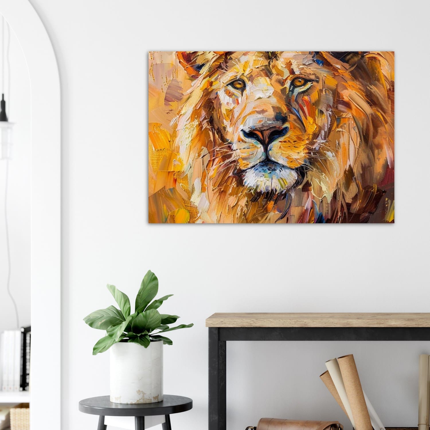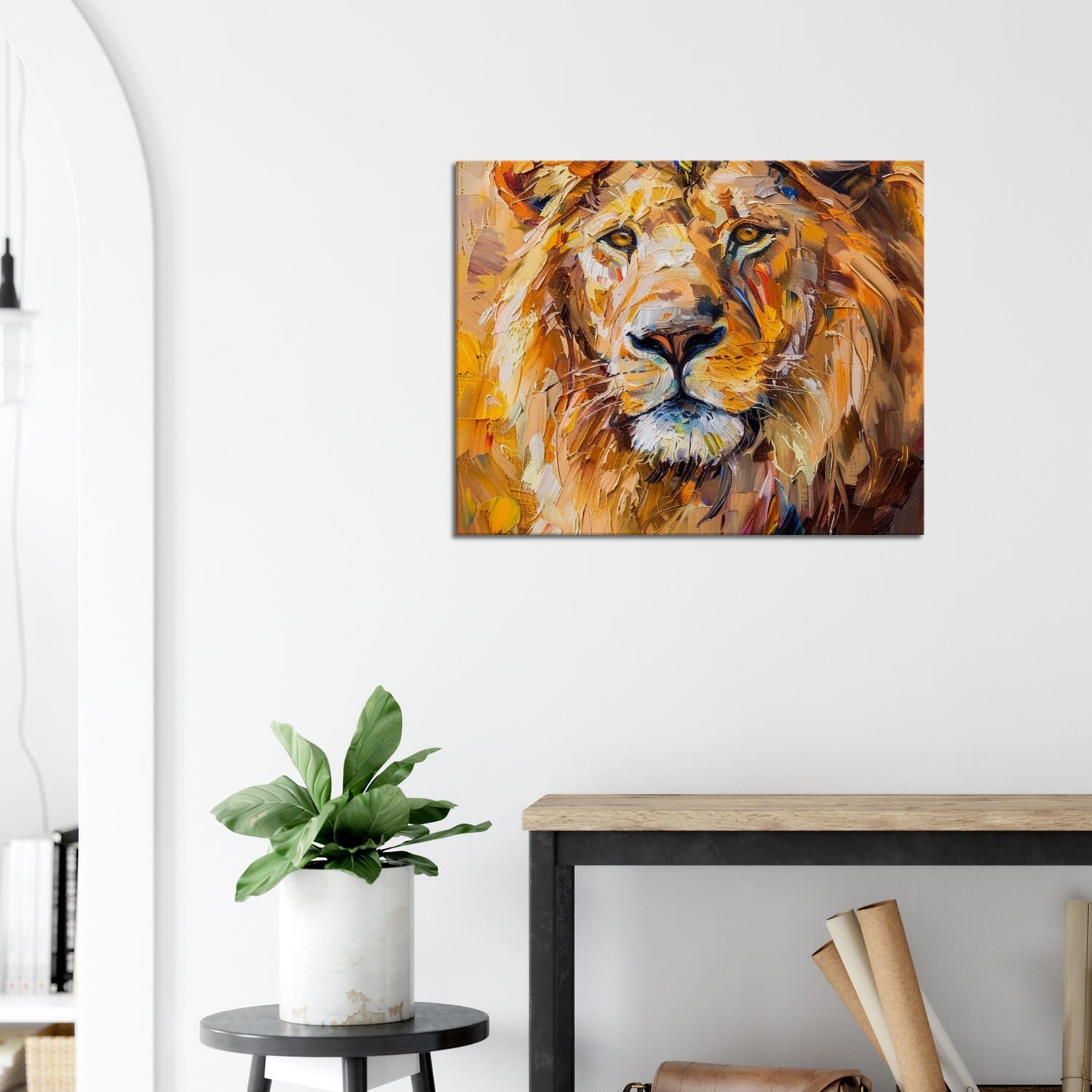 In “Crowned in Light”, Kwame Mensah brings regal life to the king of the savanna through vibrant oil brushwork and glowing golden tones. The lion’s face emerges from radiant hues of amber, ochre, and sunlit orange — each stroke alive with movement and emotion.
