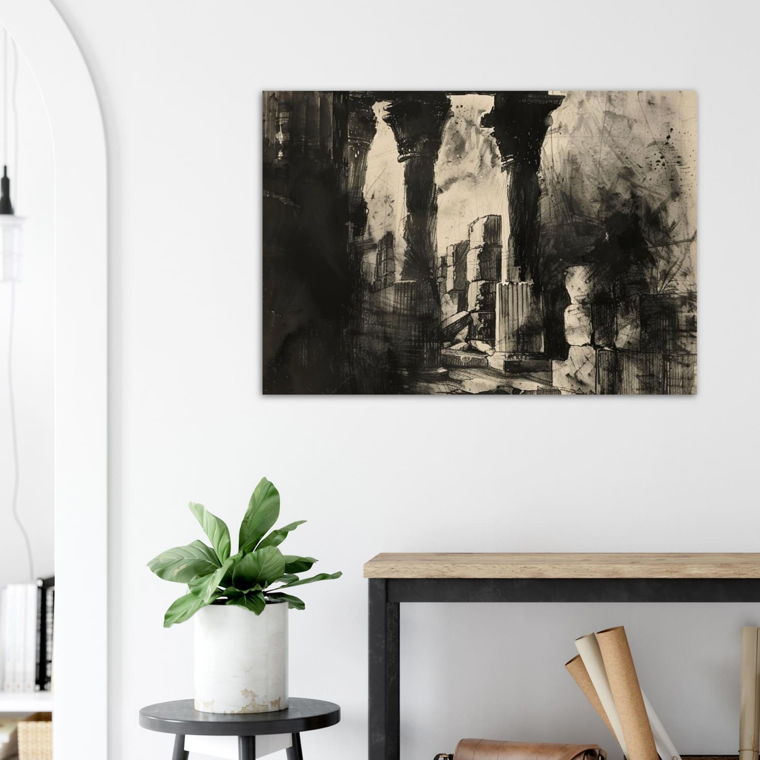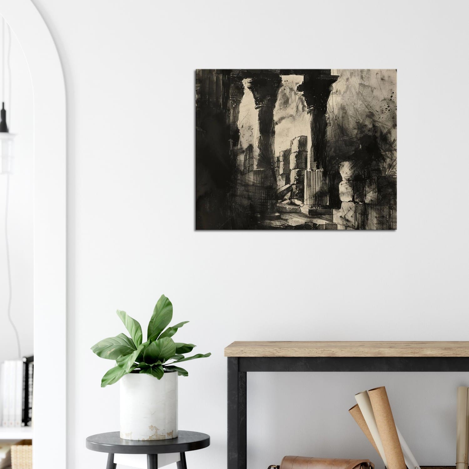 Mwansa’s hand-drawn technique emphasizes texture and age, turning crumbling stone into a poetic meditation on history and endurance. This black-and-white artwork radiates a sense of reverence and strength, making it a striking focal piece for spaces that value heritage and authenticity.