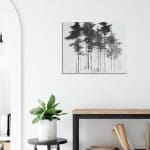 Minimalist black ink forest painting by Amara Tesfaye, inspired by Japanese sumi-e style. Elegant, calm, and handcrafted wall art.