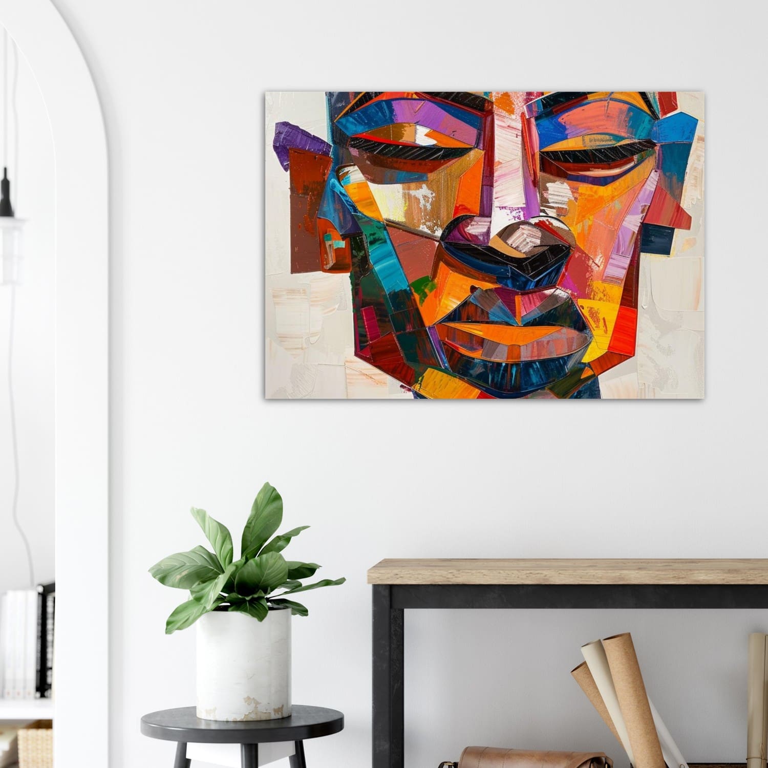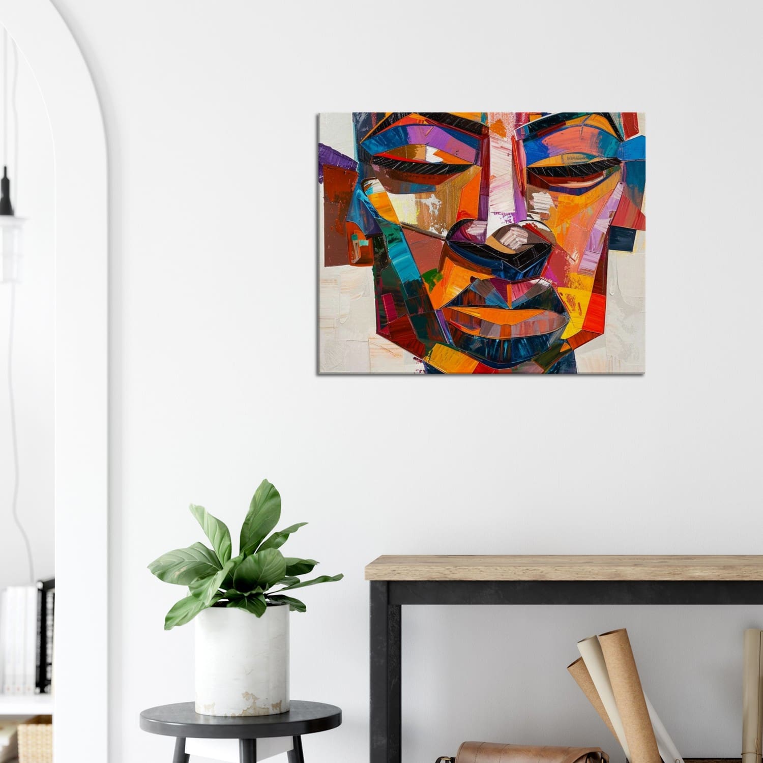 “Warrior Spirit” by Ngozi Adetokunbo fuses cubist structure with raw emotional energy to portray the strength and dignity of the African warrior. Angular planes and vivid brushstrokes collide in a symphony of reds, ochres, and deep indigos — colors that pulse with courage and history.