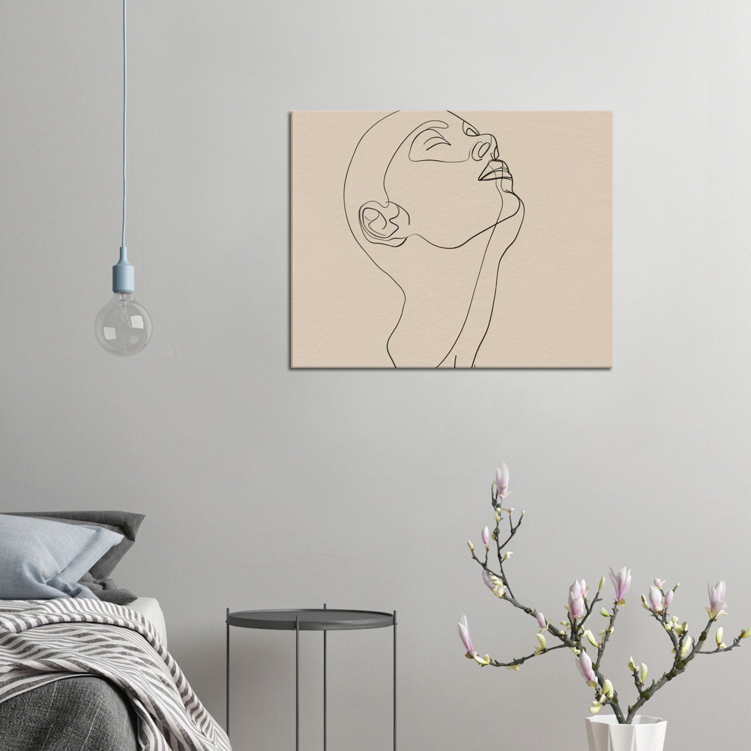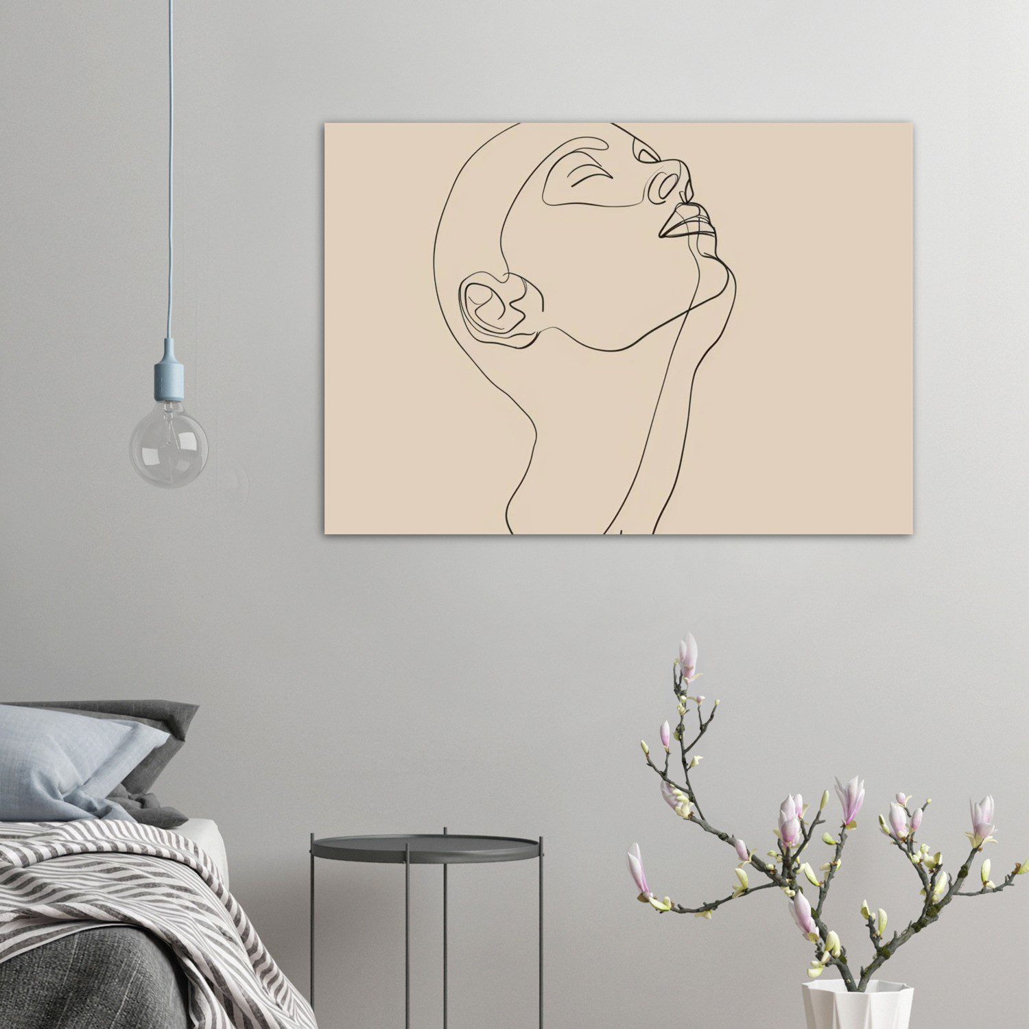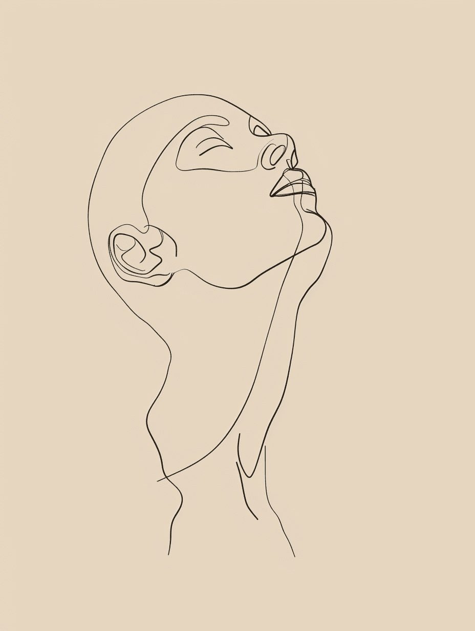 A minimalist continuous line illustration of an abstract human head tilted upward in a flat poster style.