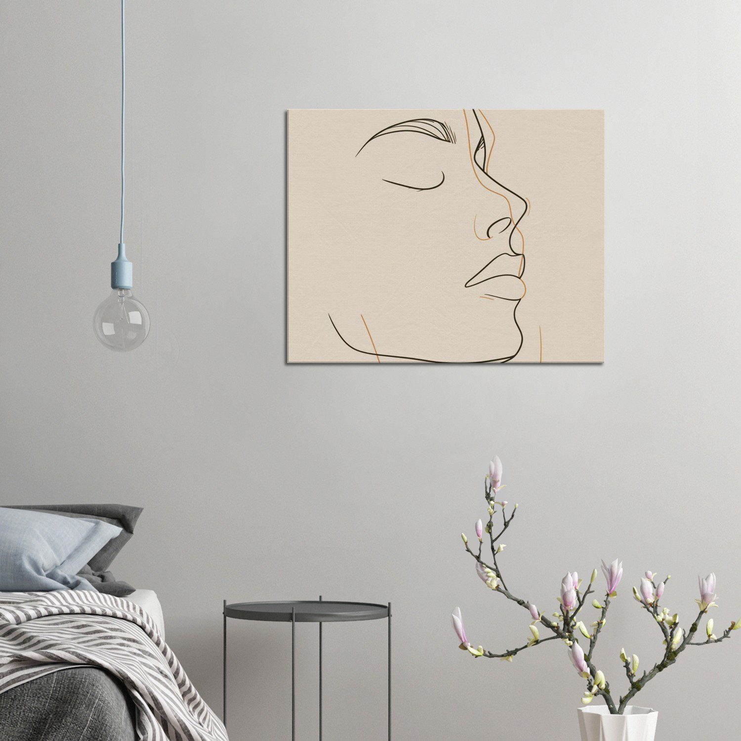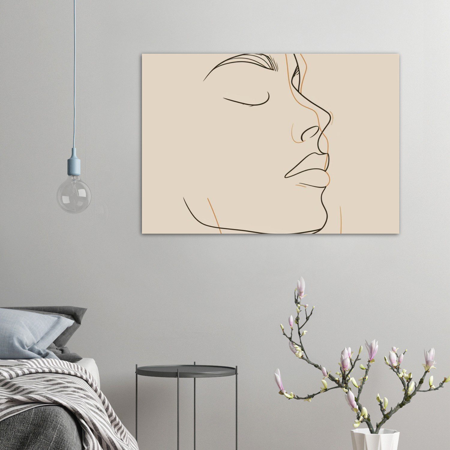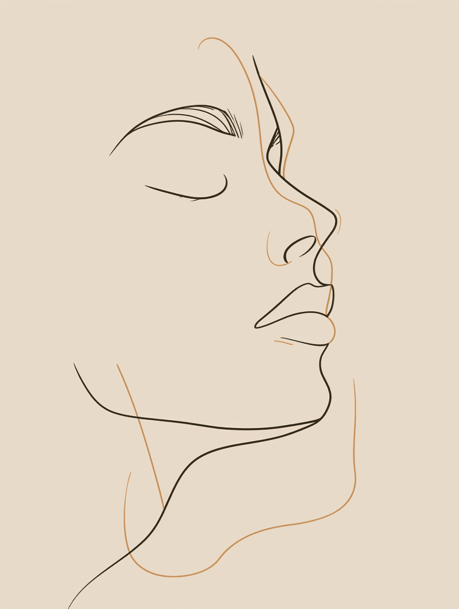 A minimalist one-line abstract portrait with an emphasized jawline, designed as a flat 2D poster artwork.