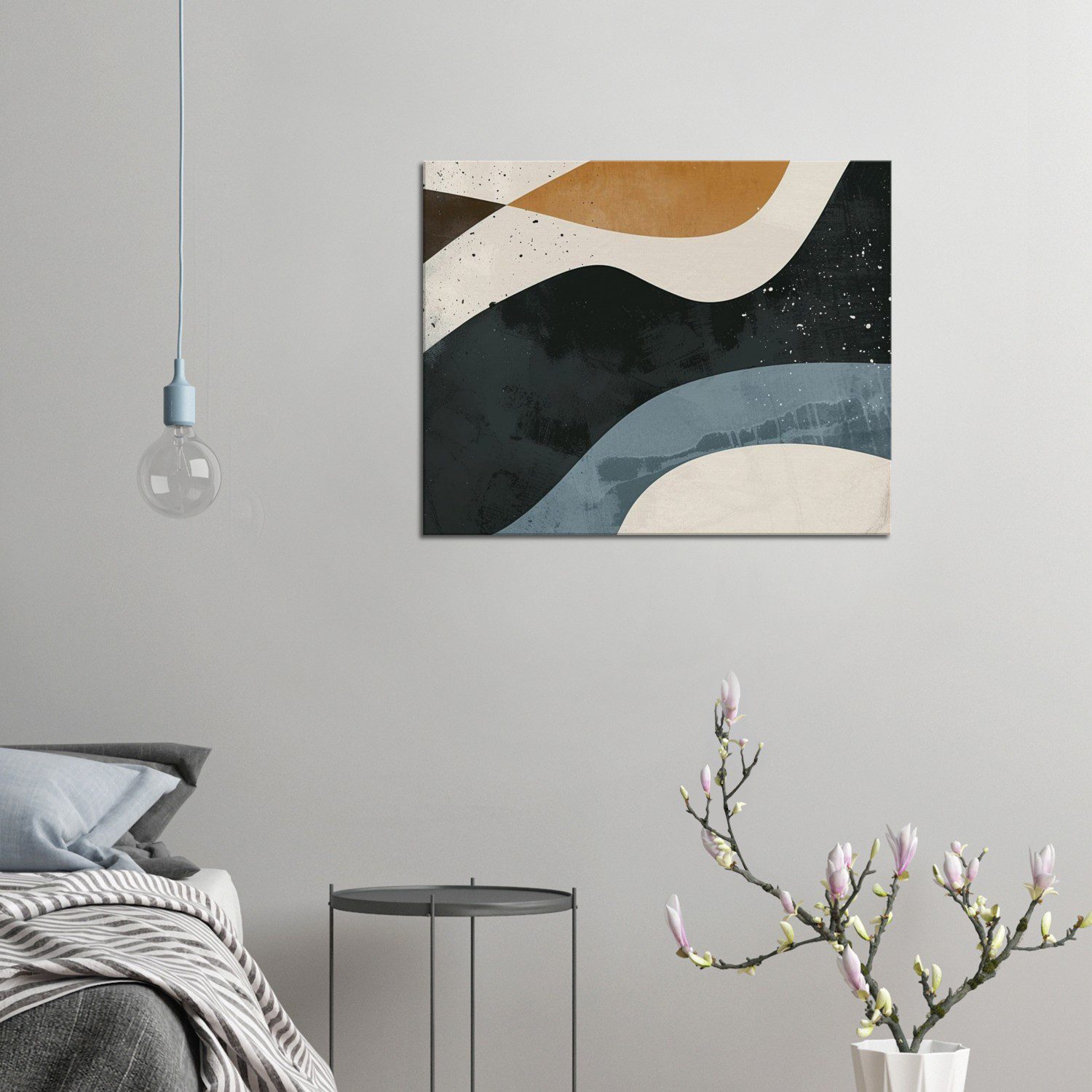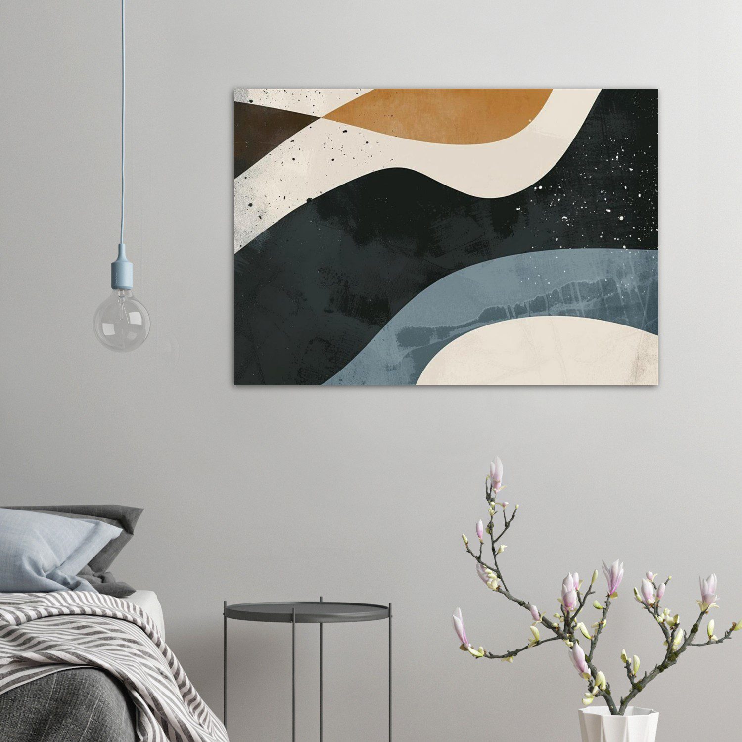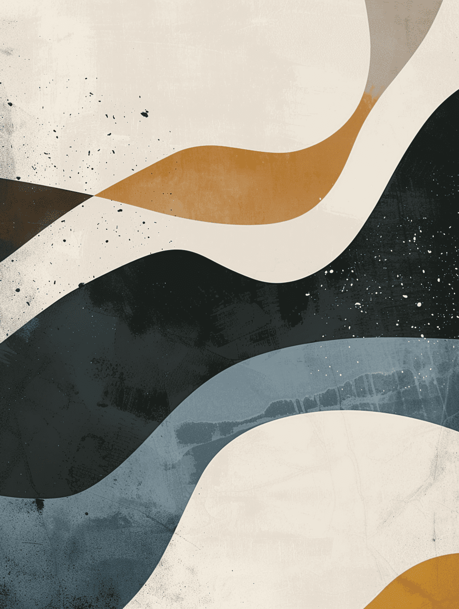 An abstract flat poster artwork inspired by water movement, featuring soft curved shapes and a calm modern aesthetic.