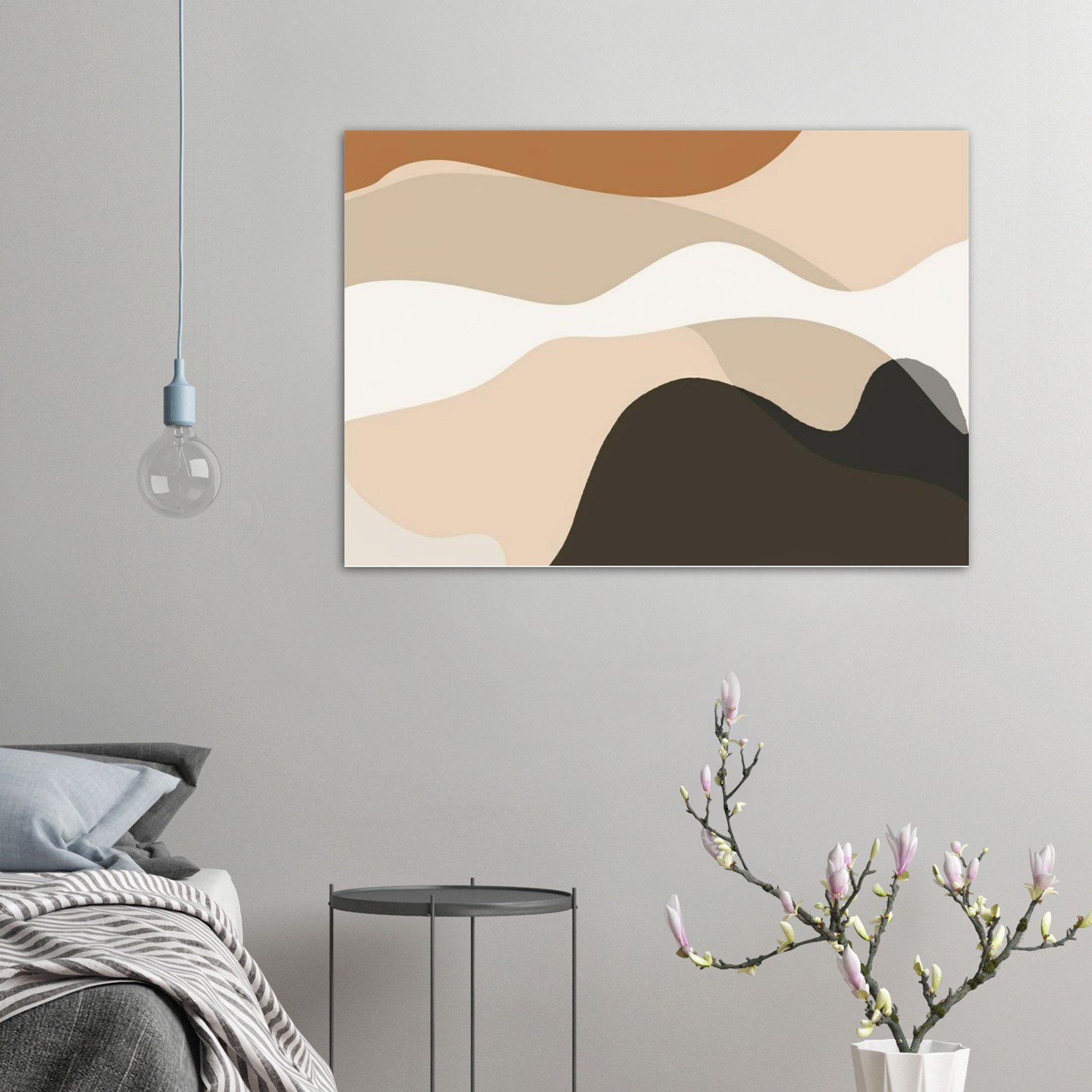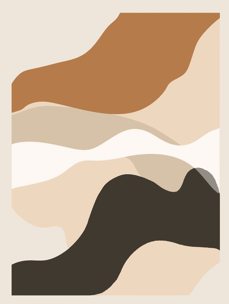 An organic abstract poster inspired by human body movement, featuring smooth shapes in a flat 2D design.