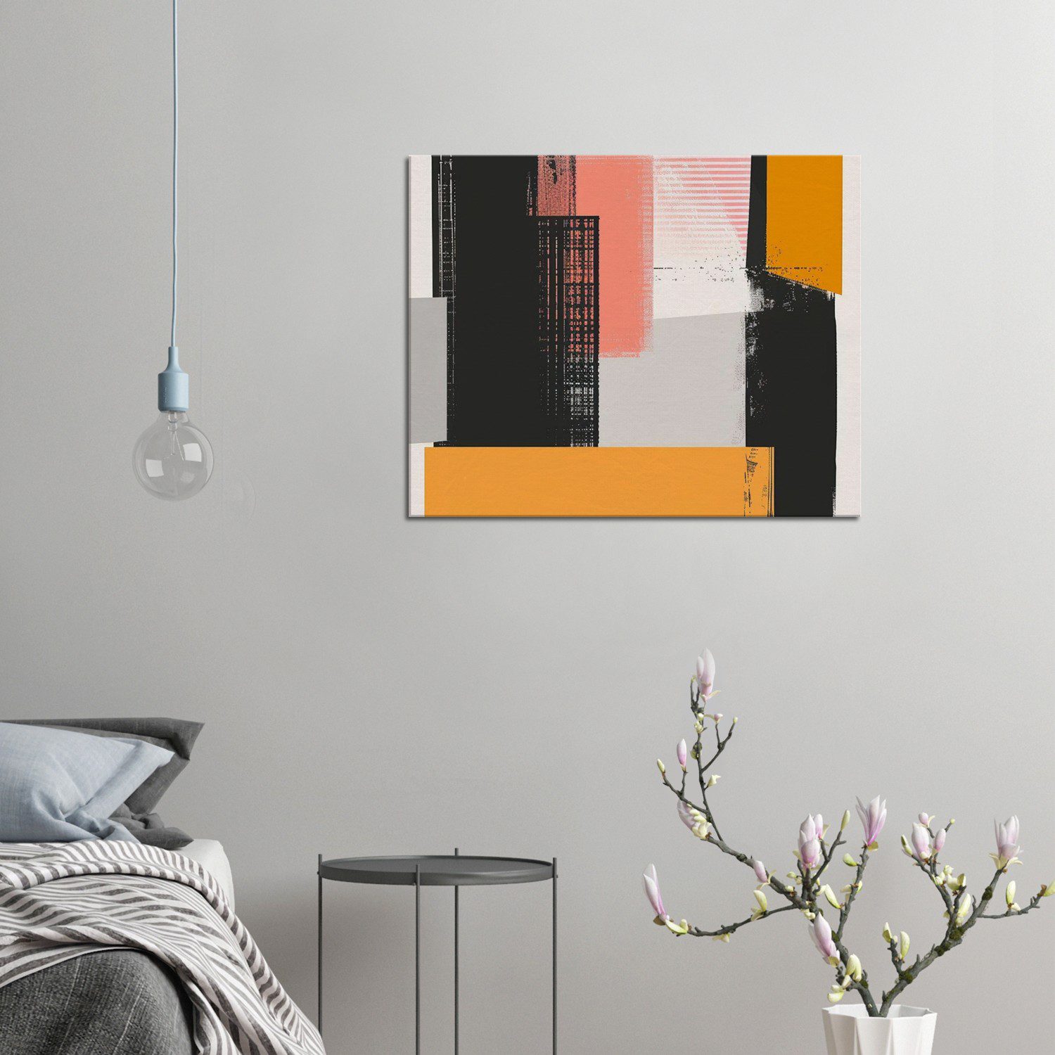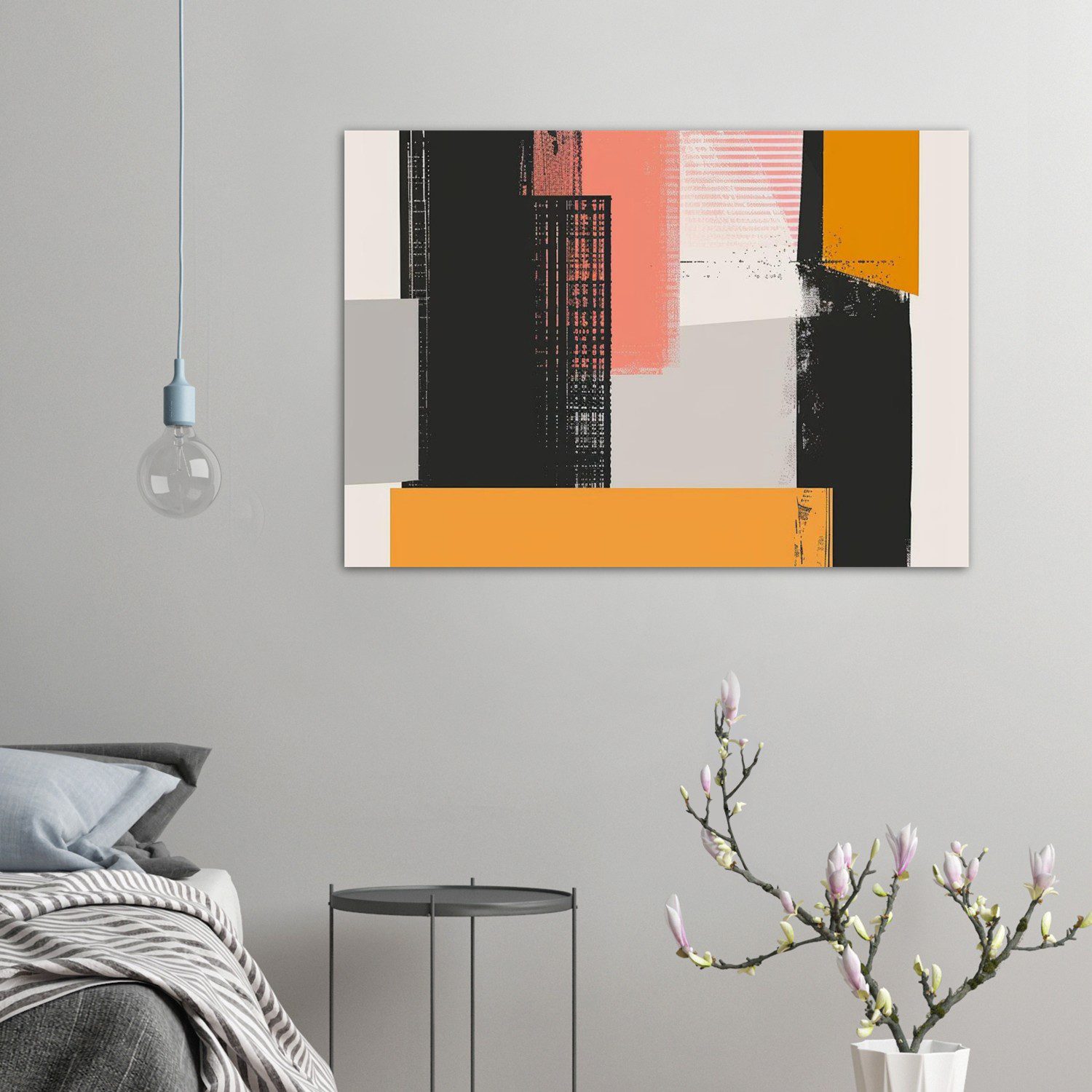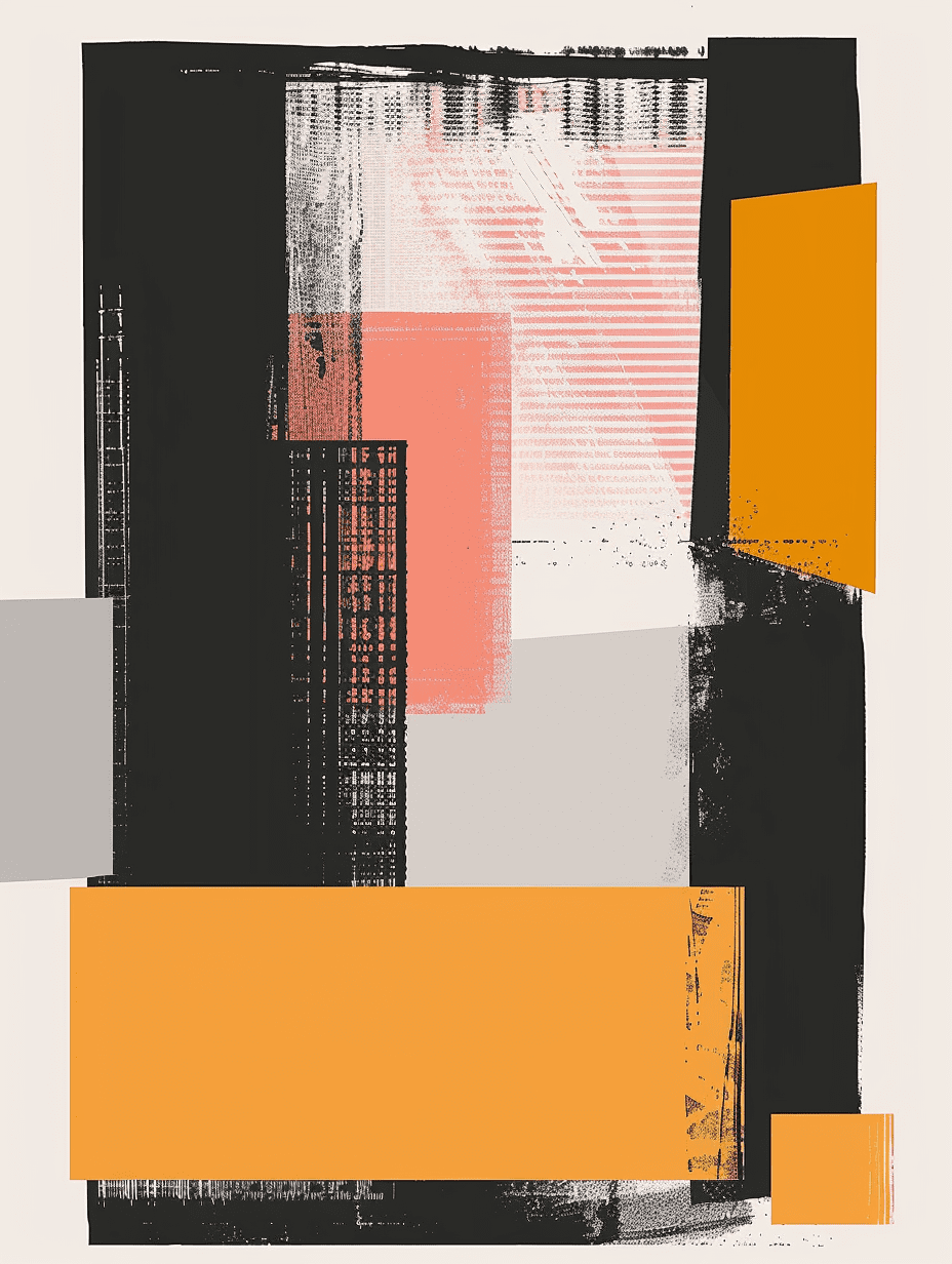 A minimal brutalist abstract poster inspired by urban structures, featuring a flat design and limited color palette.