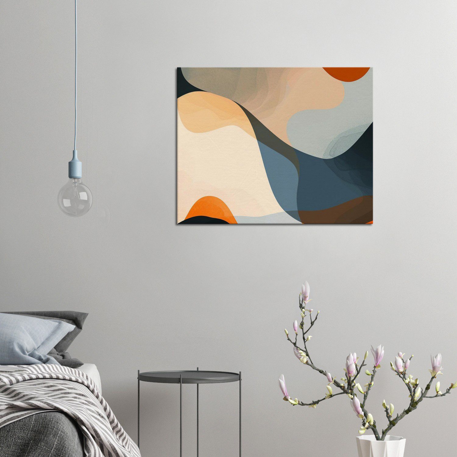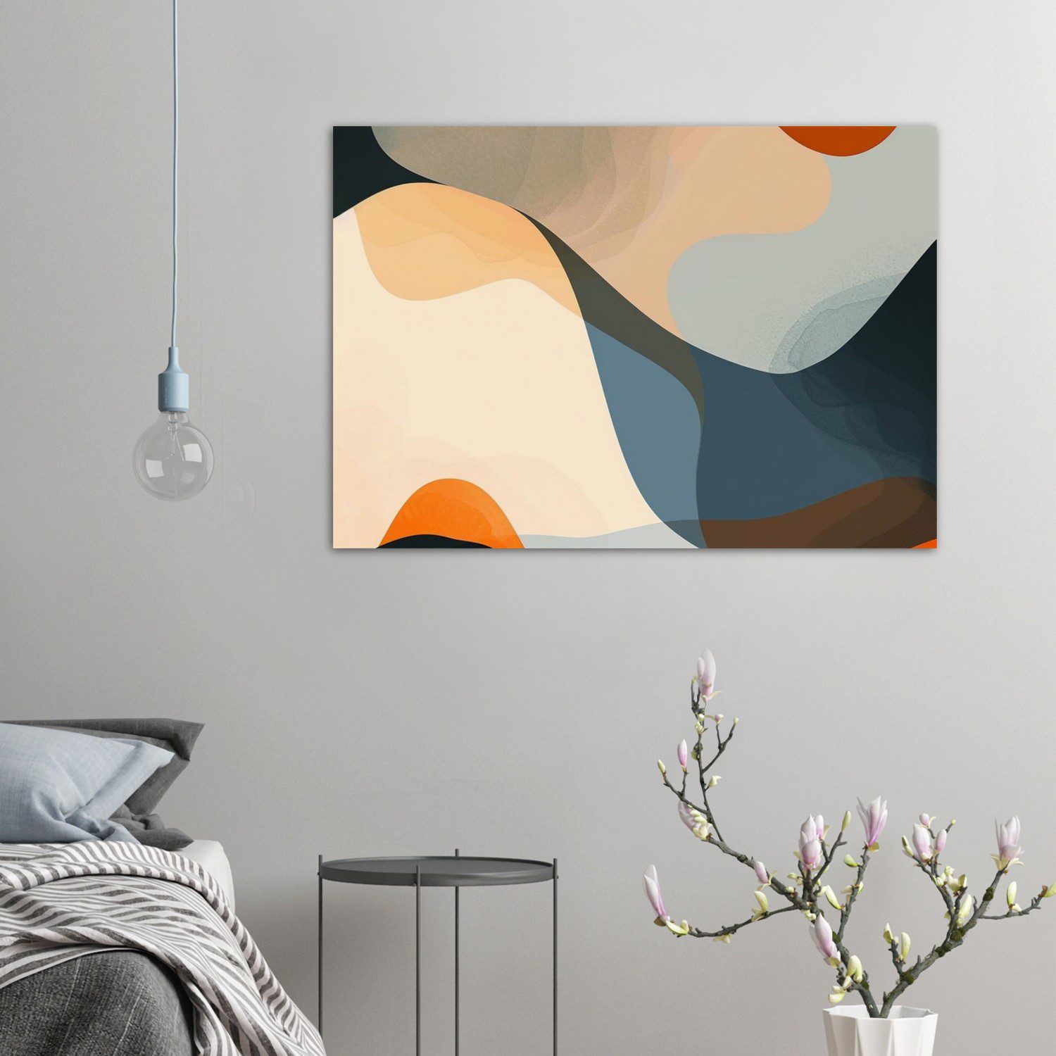 A modern abstract poster with large soft-edged forms and strong negative space in a flat 2D design.