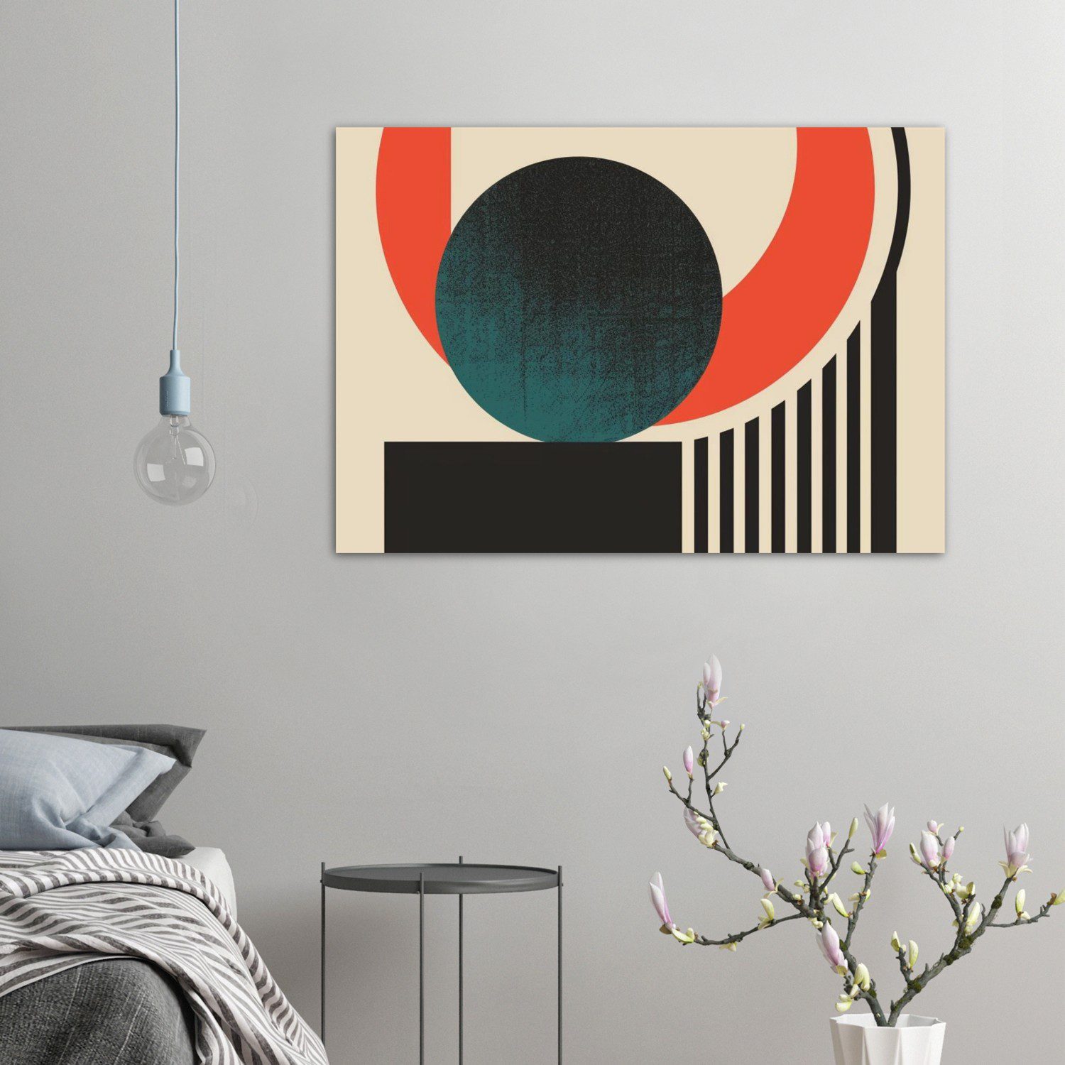 A minimal abstract poster with repeated geometric elements and strong negative space in a flat 2D design.