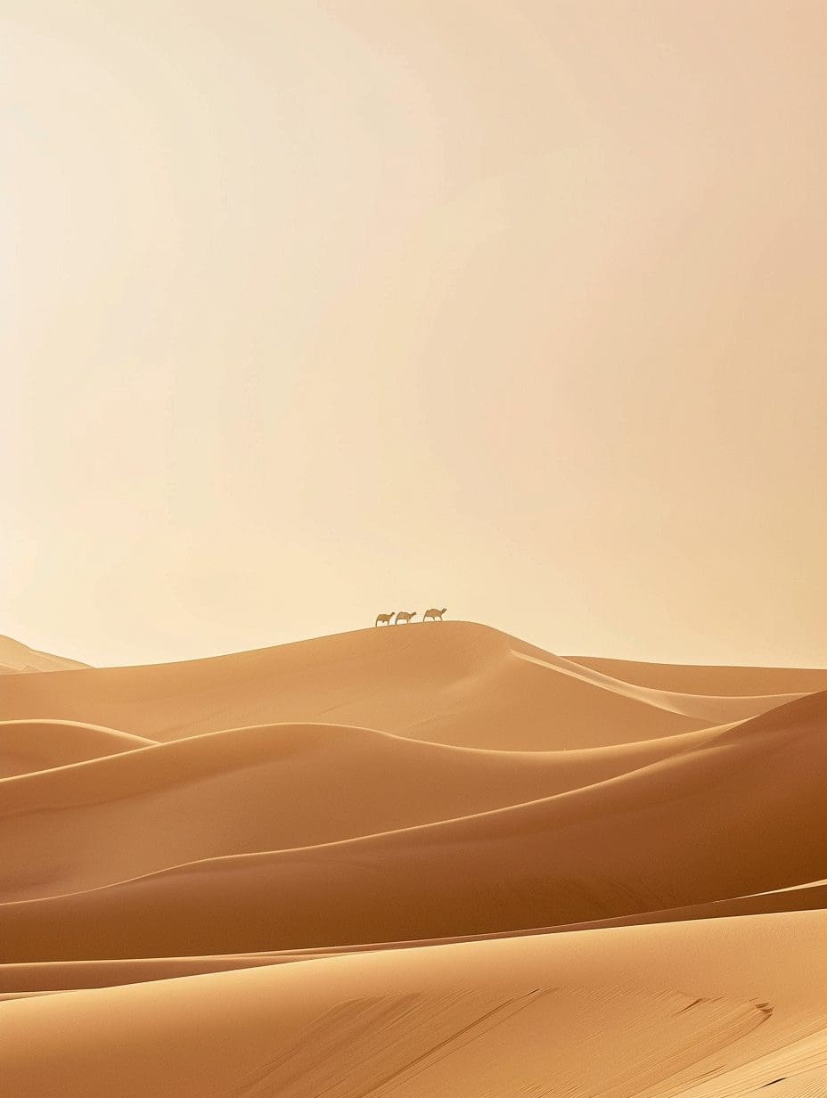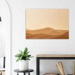 Abstract minimalist desert scene by Amina Okoye — golden dunes, soft light, and a distant caravan. A warm, elegant wall art piece evoking calm and balance.