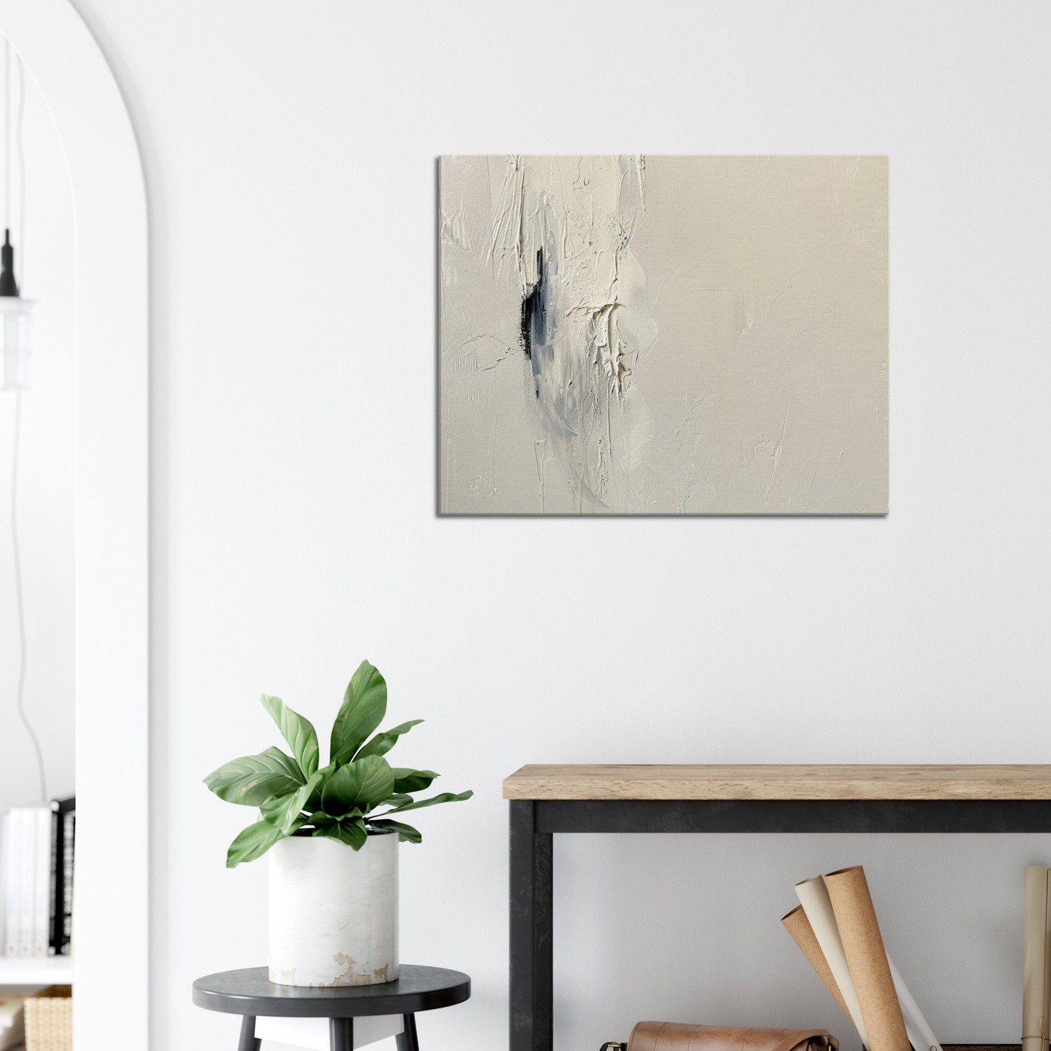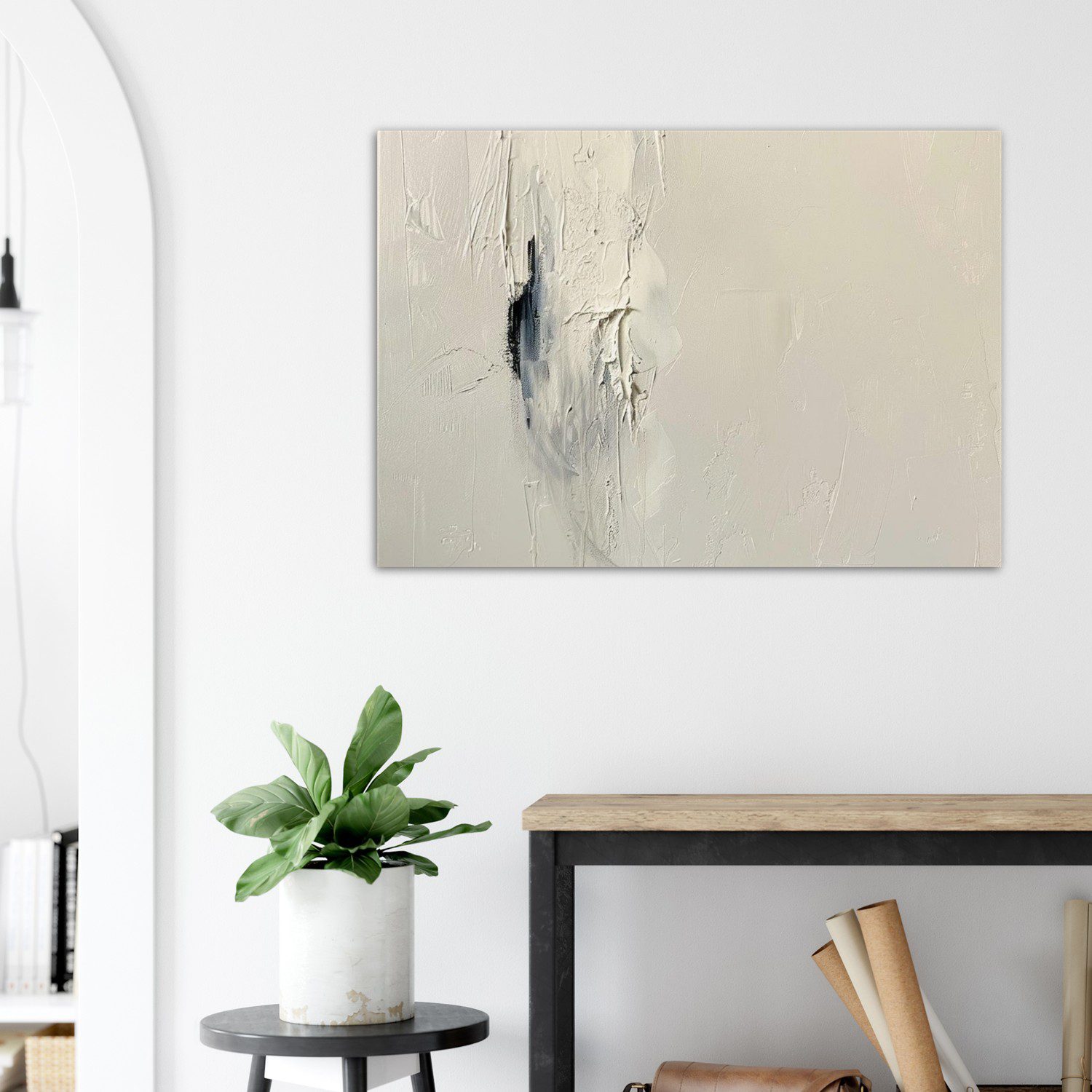 Textured abstract by Kwame Mensah — soft cream background, gentle brushwork, and minimal composition. Elegant, calm fine art on canvas.